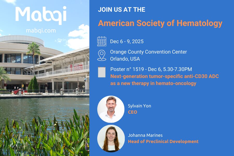 As part of the scientific program, Johanna Marines, PharmD, Head of the Preclinical Team at Mabqi, will present the latest preclinical in vivo results of MQI-181, our novel pH-sensitive ADC for hematology-oncology during the session “605. Molecular Pharmacology and Drug Resistance: Lymphoid Neoplasms” – Poster #1519 (Saturday, December 6, 05:30 PM – 07:30 PM EST, Location: OCCC – West Halls B3-B4)