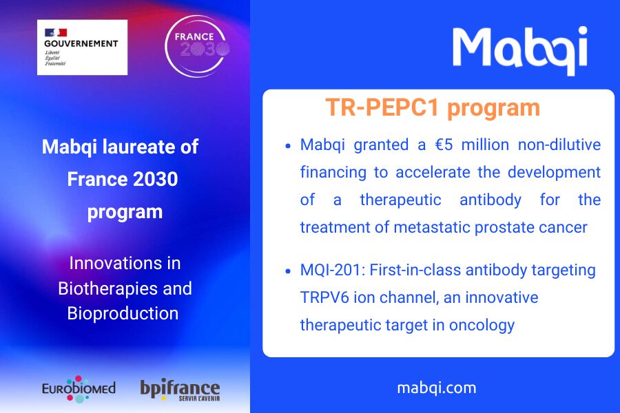 Mabqi secures a €5 million non-dilutive financing from the France 2030 public investment plan to advance preclinical development of it’s lead antibody candidate MQI-201 in oncology.