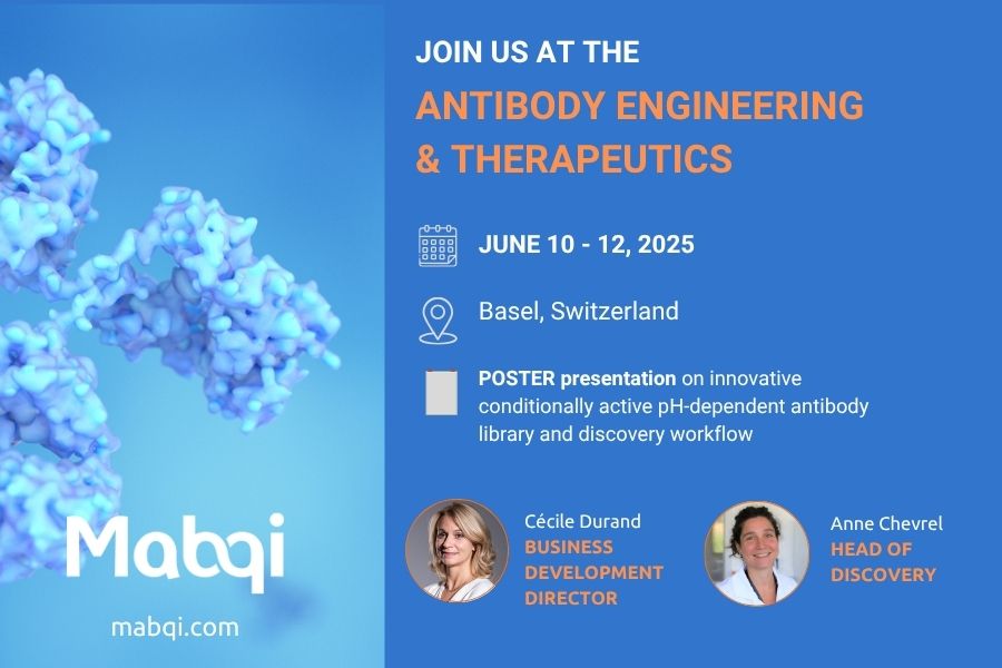 Anne Chevrel and Cécile Durand will represent Mabqi at the Antibody Engineering & Therapeutics Europe congress, taking place from June 10 to 12, 2025, at the Congress Center in Basel, Switzerland.