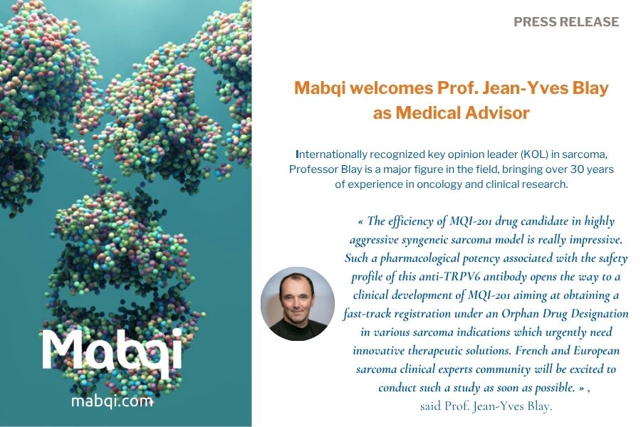 « The efficiency of MQI-201 drug candidate in highly aggressive syngeneic sarcoma model is really impressive. Such a pharmacological potency associated with the safety profile of this anti-TRPV6 antibody opens the way to a clinical development of MQI-201 aiming at obtaining a fast-track registration under an Orphan Drug Designation in various sarcoma indications which urgently need innovative therapeutic solutions. French and European sarcoma clinical experts community will be excited to conduct such a study as soon as possible. » said Pr. JY Blay